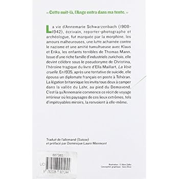 Un livre touchant et sincère, qui ne devait pas être publié (elle utilisera ce matériau pour écrire "la Vallée heureuse" où elle modifiera quelques noms pour cacher son homosexualité). Chaque chapitre est un cliché pris dans en Perse, dans les ruines de Perspépolis, dans un paysage trop grand pour elle, qui reflète ses sentiments profonds. Mais Annemarie ne se contente pas de décrire ses affres psychologiques, elle nous montre aussi la vie des archéologues qui l'accompagnent, celle de la jeune Zaddika et de la belle Yalé, séquestrée par son père, mais ce que j'apprécie particulièrement c'est son combat et son dialogue avec l'Ange.Annemarie Schwarzenbach, femme intelligente, cultivée et terriblement sensible, appartient à la même génération qu'Hermann Hesse. Leurs romans reflètent l'agonie du romantisme à l'approche des deux guerres mondiales. Elle portait, elle aussi, le signe de Caïn...
