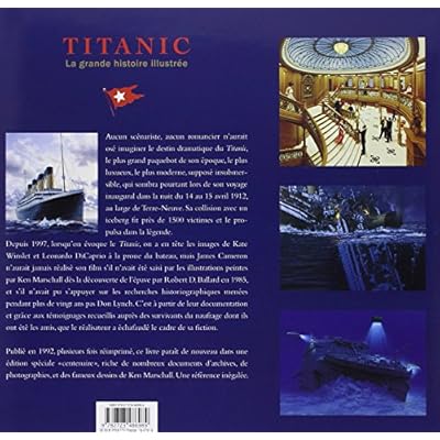 Aucun scénariste, aucun romancier n’aurait osé imaginer la dramatique saga du plus grand navire de son époque, le plus luxueux, le plus moderne, supposé insubmersible, qui sombra pourtant lors de son voyage inaugural. Sa collision avec un iceberg dans l’Atlantique nord fit près de 1500 victimes.Depuis 1997, lorsqu’on évoque le Titanic, chacun a en tête les images de Kate Winslet et Leonardo DiCaprio à l’étrave du bateau, mais le film le plus vu de tous les temps n’aurait pas autant marqué les esprits sans le travail de reconstitution fidèle réalisé avec les auteurs de cet ouvrage.Les recherches historiques menées pendant plus de vingt ans pas Don Lynch et les illustrations fascinantes créées par Ken Marschall dès la découverte de l’épave du Titanic par Robert D. Ballard, ont inspiré James Cameron. C’est avec leur collaboration et grâce aux témoignages recueillis auprès des survivants du naufrage dont ils ont été les amis, que le réalisateur a échafaudé le cadre de sa fiction, si criant de vérité. Publié en 1992, plusieurs fois réimprimé après le succès phénoménal du film, ce livre paraît de nouveau dans une édition " spécial centenaire ", riche de centaines de documents d’archives, de photographies, des tableaux et les fameux dessins de Ken Marschall. Une référence inégalée.